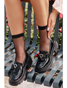 S. BARSKI Kožené Dámské Mokasíny S Mašlí A Srdcem D&A Černé