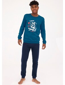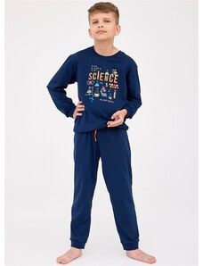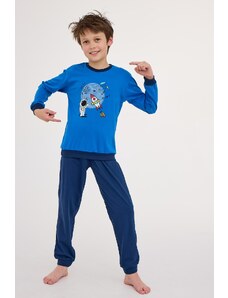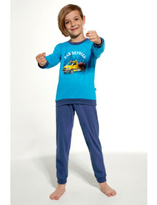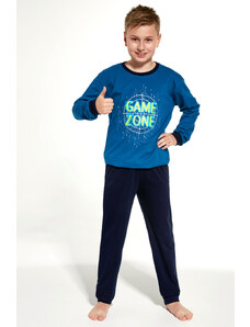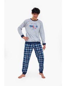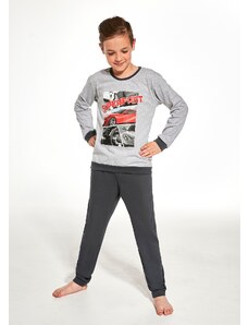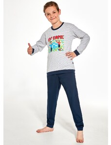 Chlapecké pyžamo s dlouhým rukávem Cornette 267/151 NEW YORK s potiskem. Pohodlné chlapecké pyžamo vyrobené z vysoce kvalitní a měkké bavlny. Tričko s dlouhým rukávem, vpředu zdobené jemným potiskem. Pohodlné jednobarevné kalhoty v nohavicích ukončené manžetovým úpletem. Baleno v dárkové krabičce.