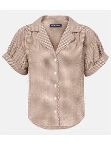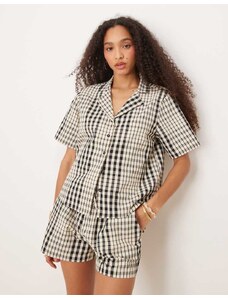Noisy May Curve seersucker short sleeve boxy shirt co-ord in chocolate gingham-Brown