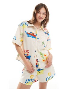 Pieces boxy fit shirt co-ord in summer holiday print-Yellow