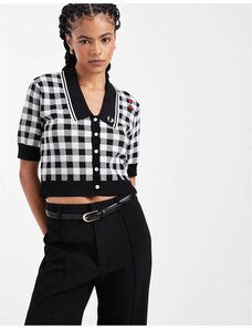 Fred Perry x Amy Winehouse gingham knitted logo shirt in black/white