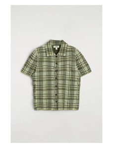 COLLUSION fitted short sleeve shirt in green check