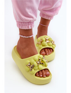 Boto Dámské Piankové Žabky S Ozdobami Na Hrubé Podrážce Limetkové Bremavia