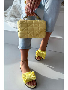 Boto Dámské pantofle na nízkém podpatku s mašlí Žluté Amivelle