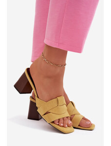 Boto Dámské sandály na podpatku s řemínky Eko semišové Žluté Corivelle