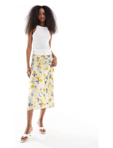 Wednesday's Girl lemon print bias cut midaxi skirt in yellow