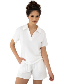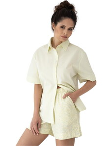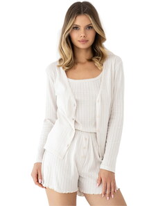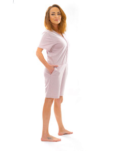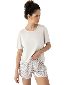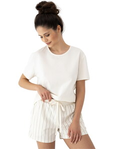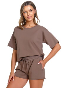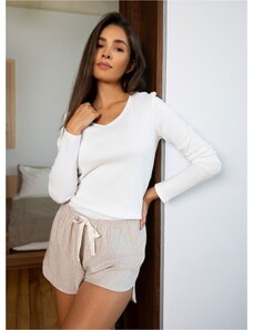 RUE PARIS Béžové dámské krátké bavlněné pyžamo -beige Béžová