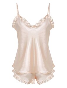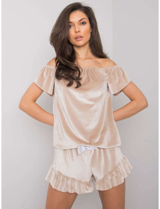 RUE PARIS Béžové velurové krátké pyžamo s volánky -beige Béžová
