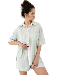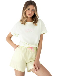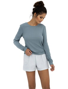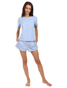 RUE PARIS Světle modré dámské krátké bavlněné pyžamo -light blue Modrá