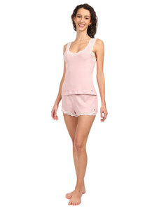 BASIC Světle růžové pyžamo s krajkovými ramínky Amelia Pink Top Světle růžová