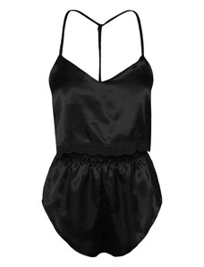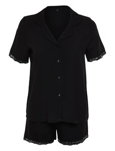 Krátké pyžamo lemované krajkou De Lafense Hazel Černá