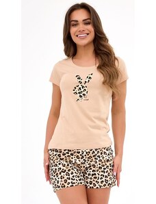 RUE PARIS Béžové velurové krátké pyžamo s volánky -beige Béžová
