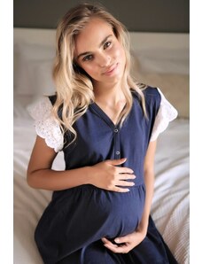 DOCTOR NAP Tmavě modrá těhotenská a kojící noční košilka Mom