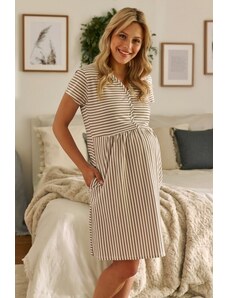 DOCTOR NAP NOČNÍ KOŠILE PRO TĚHOTNÉ A KOJÍCÍ ŽENY S BÉŽOVÝMI PRUHY Pruhovaný vzor