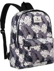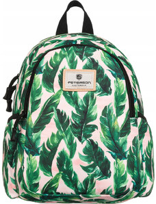 Peterson bílo-zelený městský batoh se vzorem listů Vzory