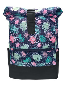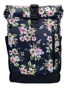 Tapple Černo-modro-šedý dámský rolovací batoh s květinami Bellinda