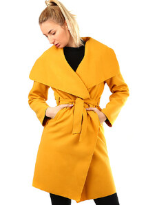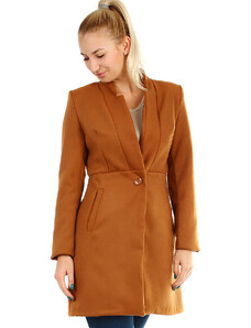 MladaModa Kabát s broží a zapínáním na knoflík model 15360 barva camel