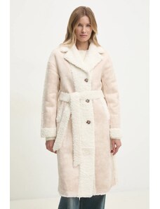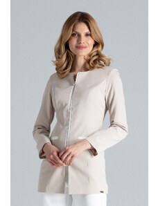 MladaModa Kabát s broží a zapínáním na knoflík model 15360 světlý béžový