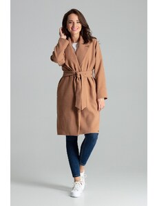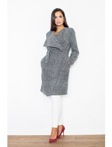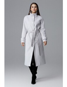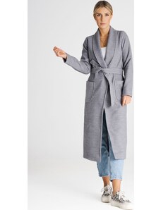 FIGL Šedý dlouhý kabát s páskem Šedá