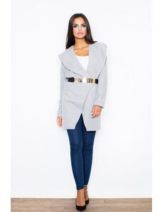 FIGL Elegantní šedý kabát se zlatým páskem Šedá