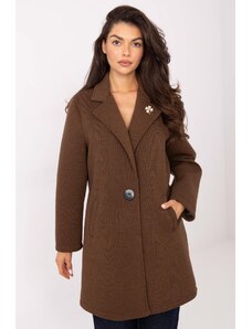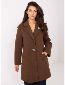 RUE PARIS Hnědý dámský krátký kabát s broží -brown Hnědá