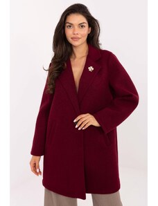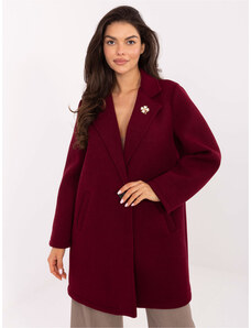 MladaModa Kabát s broží a zapínáním na knoflík model 15360 vínový