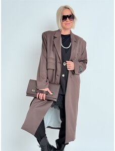 MladaModa Dámský kabát s dlouhými patenty na rukávech model 79951 barva mocca