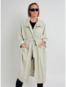 K-Fashion Dámský kabát Plus Size z viskózy bez zapínání s kapsami béžový