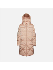 Perso Pastelově růžová dámská dlouhá zimní bunda s kožešinou na kapuci Růžová
