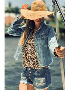 DROMEDAR Dámská rovná modrá džínová bunda (DL2245L)
