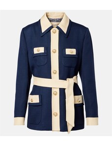 Pieces tie front quilted jacket in blue and white gingham-Navy