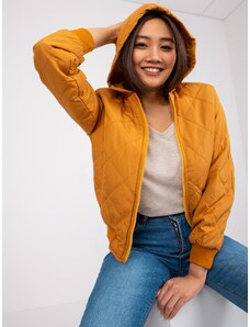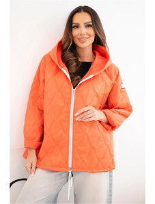 K-Fashion Dámská jarní prošívaná bunda s kapucí a na zip tmavě oranžová