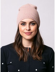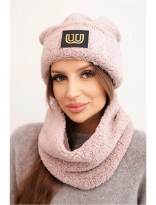 K-Fashion Dámská polarová souprava čepice a šála s ozdobnou nášivkou tmavě pudrově růžová