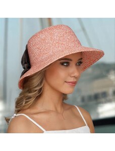 KRUMLOVANKA Dámský letní nemačkavý slamák Cloche s mašlí -lososový melange P-14033