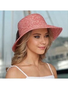 KRUMLOVANKA Dámský letní nemačkavý slamák Cloche s mašlí -červený melange P-14033