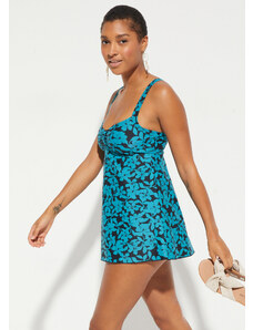 Blancheporte Jednodílné plavky Upala s tankiny efektem a potiskem černá/tyrkysová