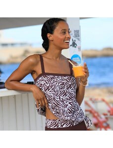 Blancheporte Plavkový tankiny top s potiskem Vinia režná/čokoládová