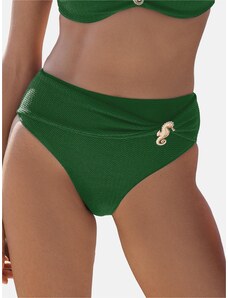 Bonprix Stahovací bikinové kalhotky s vysokým pasem, lehký tvarující efekt, s řasením zelená Žena