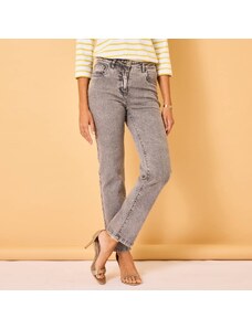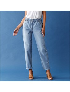Ideální jsou rovné nebo mírně rozšířené nohavice a vyšší pas, který poskytne oporu a vytvaruje siluetu. Je dobré vyhnout se příliš tenkému materiálu bez pružnosti. U plnějších tvarů funguje pevnější denim s příměsí elastanu, jenž poskytne oporu a pohodlí bez zbytečného stažení. Důležité je, aby džíny dobře seděly v pase, netáhly v oblasti boků a umožňovaly volný pohyb při chůzi i sezení.