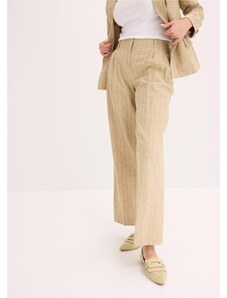 Bonprix Kalhoty se sklady u pasu a s podílem lnu hnědá Žena