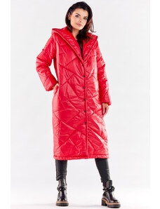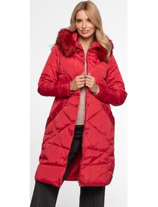 Perso Červený dámský dlouhý zimní prošívaný kabát Červená