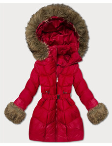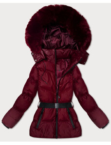 Dámská zimní bunda s páskem J Style bordó (5M3227-1)