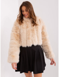ITALY MODA Béžový krátký kožíšek s kapucí -beige Béžová