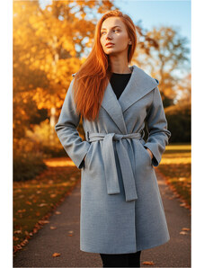BASIC Dámský dvouřadý trenčkot s kapucí světle béžový Béžová
