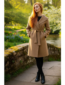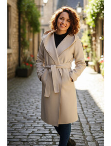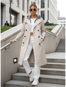 Dámský dvouřadý trenčkot s kapucí světle béžový FashionStreet TY5655