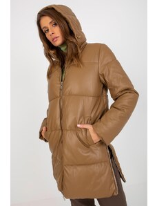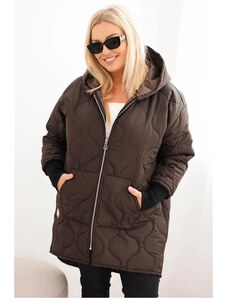 MladaModa Prošívaná bunda s kapucí a zipem model 68523 hnědá
