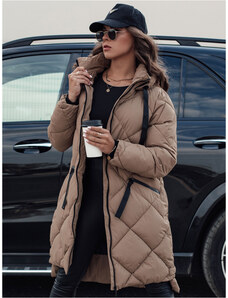 MladaModa Dlouhá prošívaná bunda s kapucí model 5393-1 barva fango