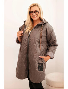 MladaModa Prošívaná oversize bunda s kapucí a nápisem HOPE barva fango