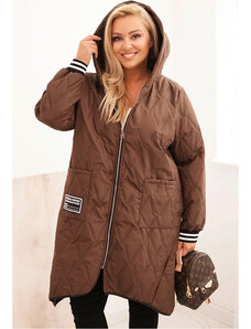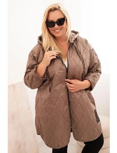 Kesi Hnědá dámská plus size prošívaná bunda s kapucí