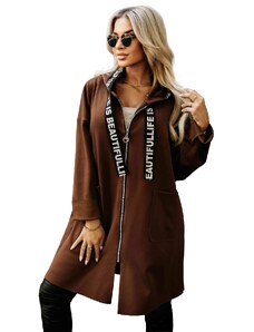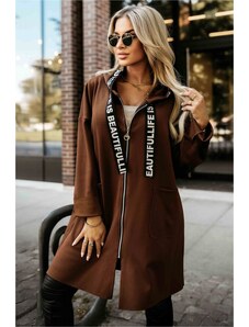 NUMOCO Čokoládově hnědý ležérní dámský kabát se zipem a módními detaily Hnědá